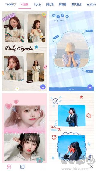 5、少女風(fēng)、清新范、屏顯風(fēng)等多種主題海報(bào)拼圖模板,支持視頻與圖片混合排版,全面適配手機(jī)壁紙、短視頻等多元場景。