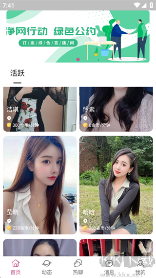 3、進(jìn)入app可以看到一些活躍的用戶,能夠發(fā)起聊天互動;