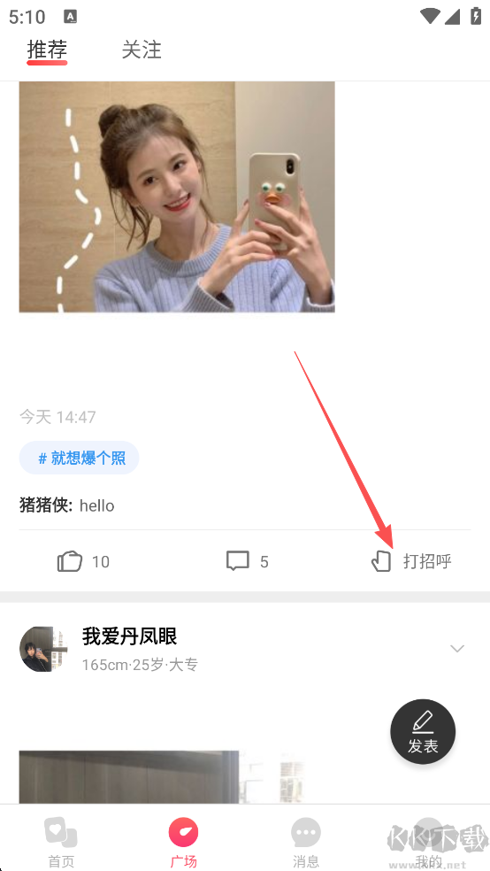 2、如果遇到自己心儀的,點(diǎn)擊【打招呼】
