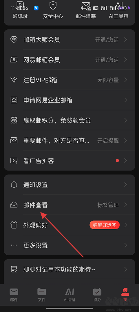 1、打開網(wǎng)易郵箱App,點擊界面右下角的【我的】選項;