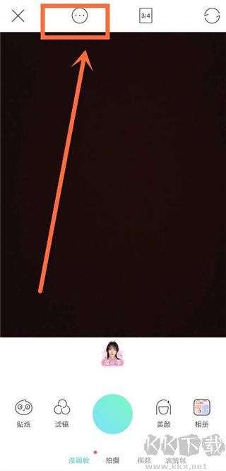 3、在拍攝界面選擇上方擴(kuò)展菜單。