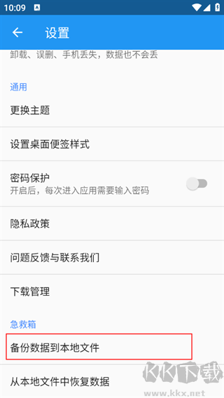 2、進(jìn)入設(shè)置頁面后,找到【急救箱】--【備份數(shù)據(jù)到本地文件】