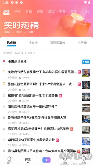4、在探索頁面點擊熱榜還有近期熱門頭條資訊瀏覽,掌握最新熱門信息。