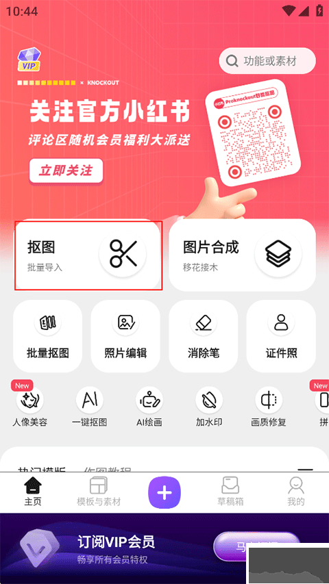 Knockout是一款處理圖像的出色應(yīng)用,能精準(zhǔn)分離主體與背景,擁有豐富實(shí)用特性,可以增添光影、視覺(jué)風(fēng)格、消除畫(huà)面多余元素,對(duì)證件照片,能自動(dòng)調(diào)整構(gòu)圖、替換底色、優(yōu)化人物神態(tài),還可以附帶大量圖案與底紋資源,方便自由組合與再創(chuàng)作,效果精細(xì),讓每幅作品都呈現(xiàn)專(zhuān)業(yè)面貌。