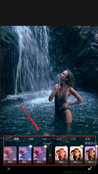 雜點、回憶、富士色調(diào)、夢幻波紋、霓虹、噪波、反射、跳色、分屏等大量原創(chuàng)炫目效果助你頃刻成就專業(yè)作品,電影感立即獲得,分段效果,凝固每段精彩瞬間,令你成為最耀眼焦點。