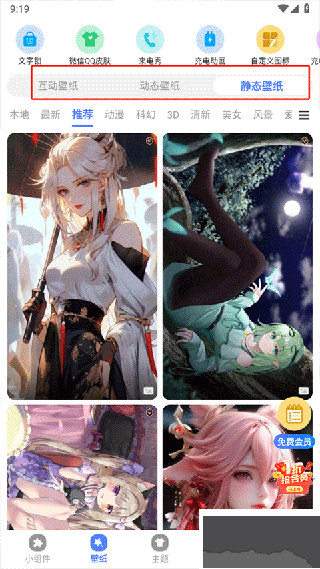 1、在壁紙頁面內(nèi)選擇一張你喜歡的互動(dòng)壁紙、動(dòng)態(tài)壁紙或靜態(tài)壁紙