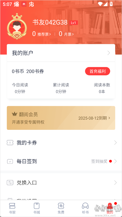 我的頁(yè)面集成賬號(hào)信息、卡券、閱讀歷史、簽到福利等所有個(gè)性化服務(wù)。