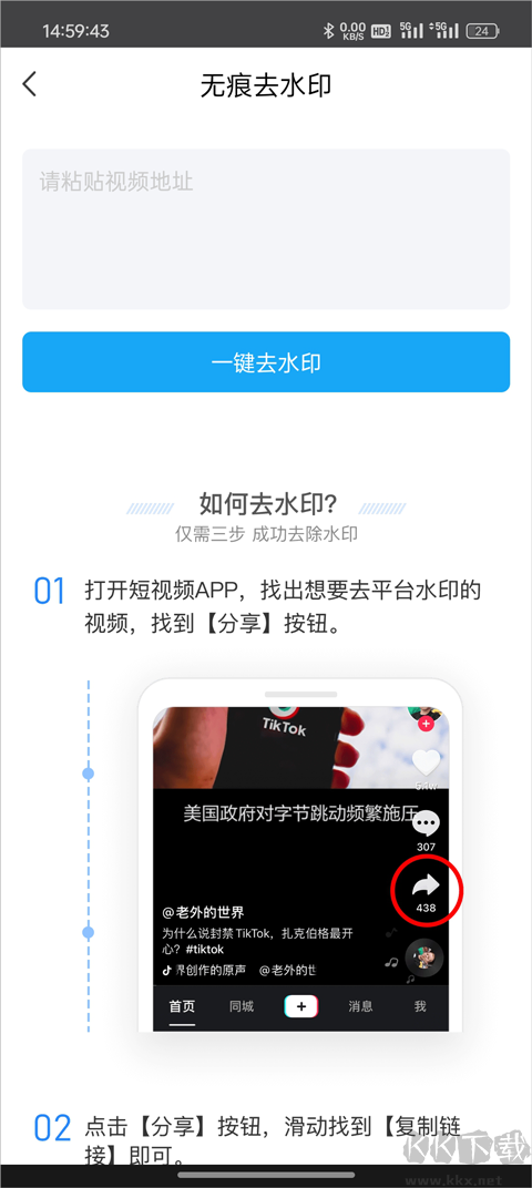 2、前往抖音復(fù)制想要去水印的視頻鏈接,并將其粘貼到輸入框中。
