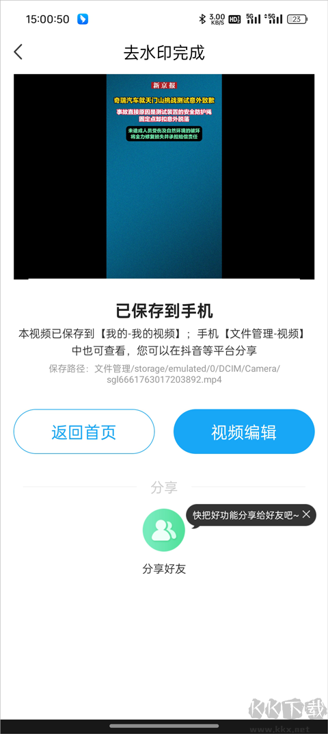 4、解析完成后,即可成功去除視頻中的水印。