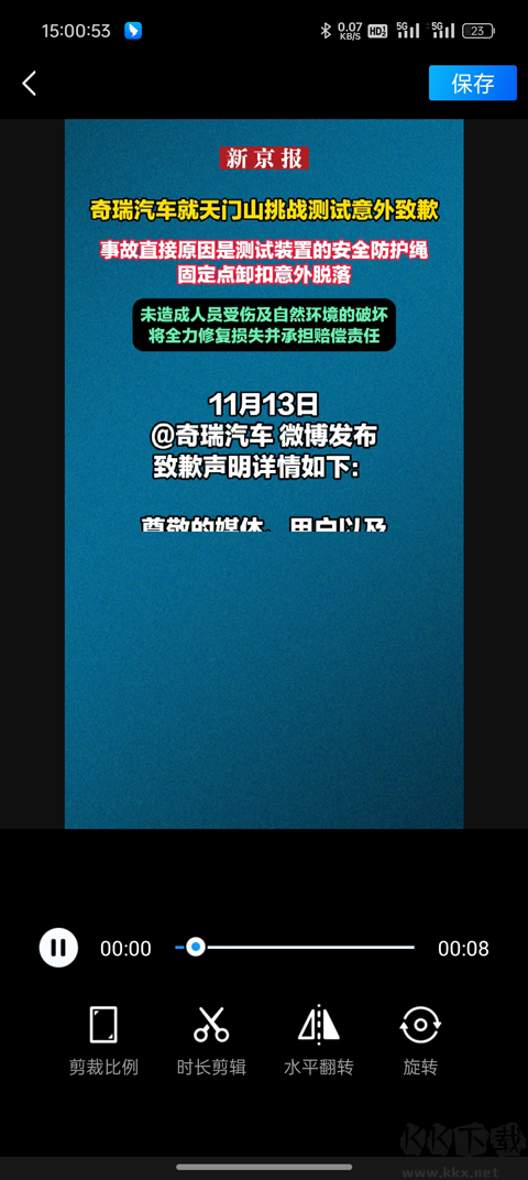 5、還可以在編輯頁(yè)面對(duì)視頻進(jìn)行再次剪輯、美化后再導(dǎo)出保存。