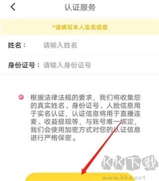 打開軟件的實名認證頁面,輸入姓名和身份證號,點擊下一步即可。