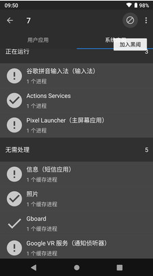 3、在待機超時,或者從多任務(wù)窗口中劃掉時,黑閾就會立刻強行停止黑閾清單中的應(yīng)用
