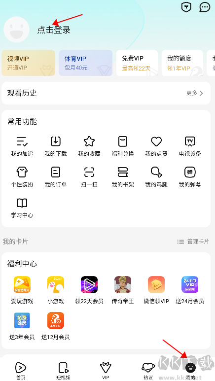 1、打開(kāi)app后,首先點(diǎn)擊我的,然后點(diǎn)擊登入。