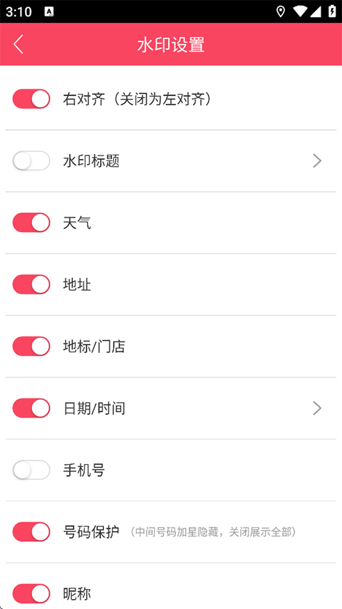 5、您可以自由調整需要顯示/隱藏的水印項目;
