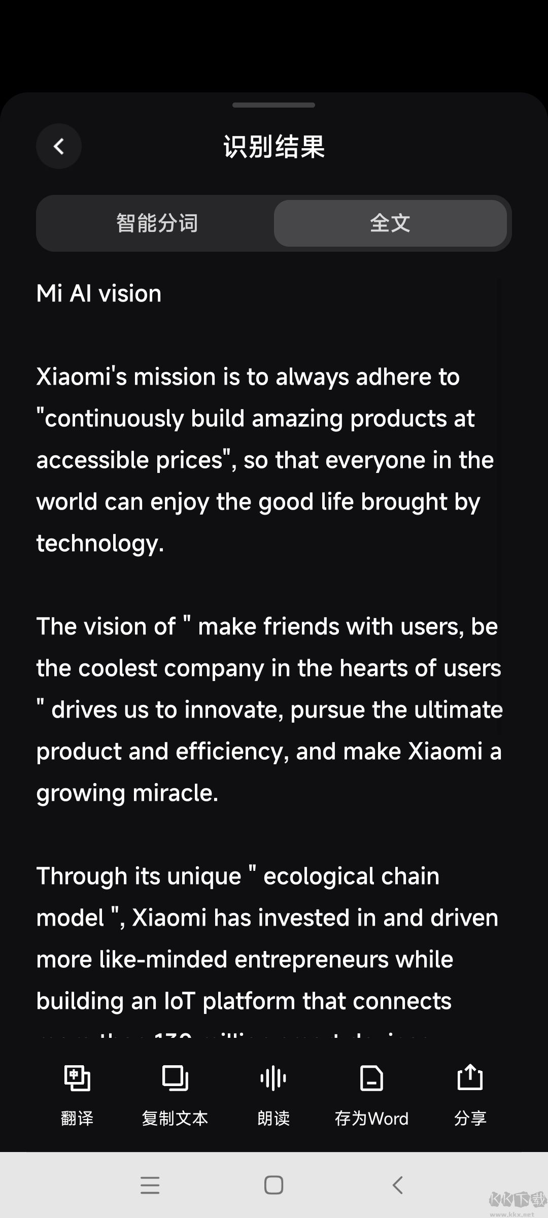 6、便捷集成:深度融入小米系統(tǒng)生態(tài),識(shí)別結(jié)果可一鍵撥打電話、跳轉(zhuǎn)網(wǎng)頁、復(fù)制鏈接、分享好友或保存至備忘錄,大幅簡(jiǎn)化后續(xù)操作步驟。