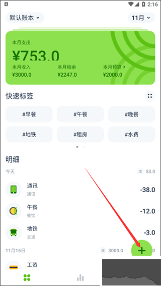 1、進(jìn)入軟件無需登錄,點擊“+”按鈕即可開始記賬;