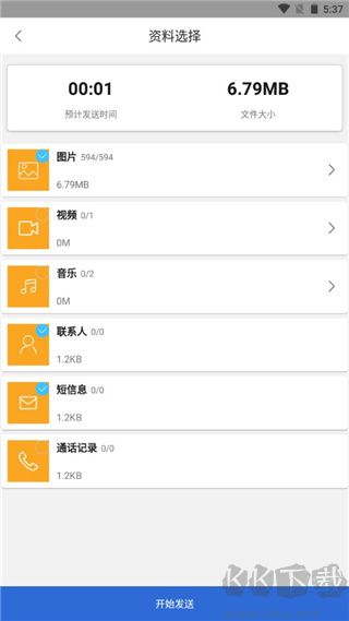 2、選擇需要傳輸?shù)膱D片、視頻、聯(lián)系人等文件,然后點(diǎn)擊開(kāi)始發(fā)送;