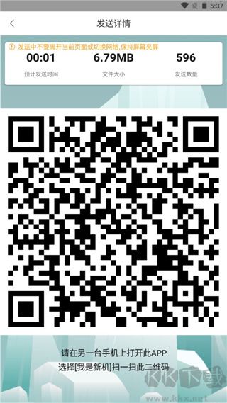 4、點(diǎn)擊我是新機(jī),然后對(duì)準(zhǔn)二維碼掃描后就開(kāi)始傳輸了。