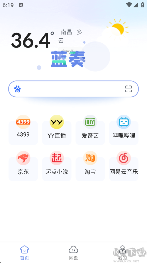 1、打開藍(lán)奏瀏覽器,用戶可以使用瀏覽器的常規(guī)功能,搜索自己需要的關(guān)鍵詞