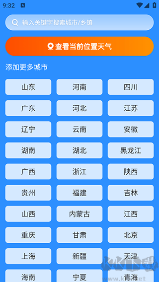 2、添加城市,選擇你所在的城市,它甚至能精準(zhǔn)到街道的天氣