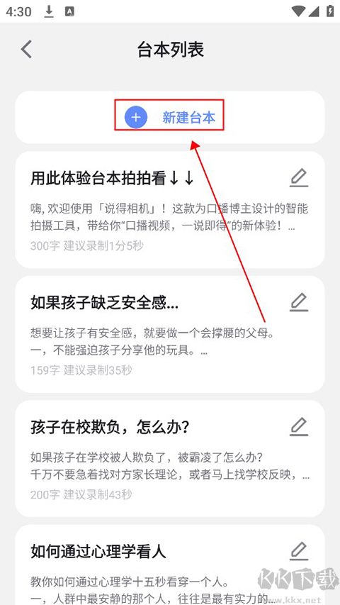 2、在這里可以看到模版臺本,用戶可以直接使用模版或者點擊上方新建臺本。