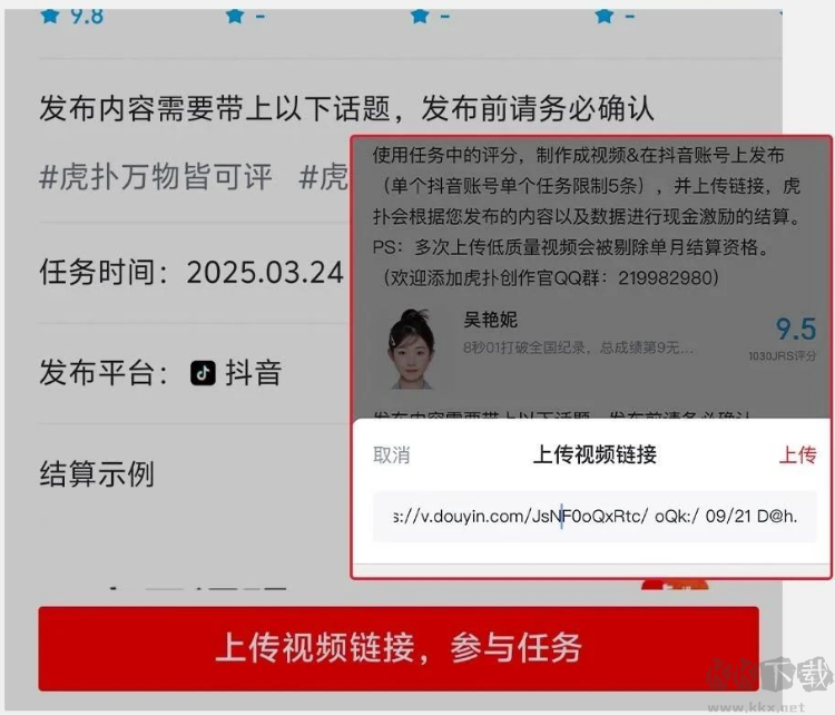 4、進入?yún)⑴c任務(wù)頁面,填入發(fā)布的視頻鏈接