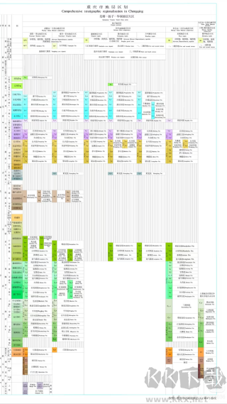 4、就可以看到花花綠綠的地層疊加在我們的地圖上了。不同的顏色代表不同時(shí)代的巖石。就能找到這些顏色對(duì)應(yīng)的地層和時(shí)代了。