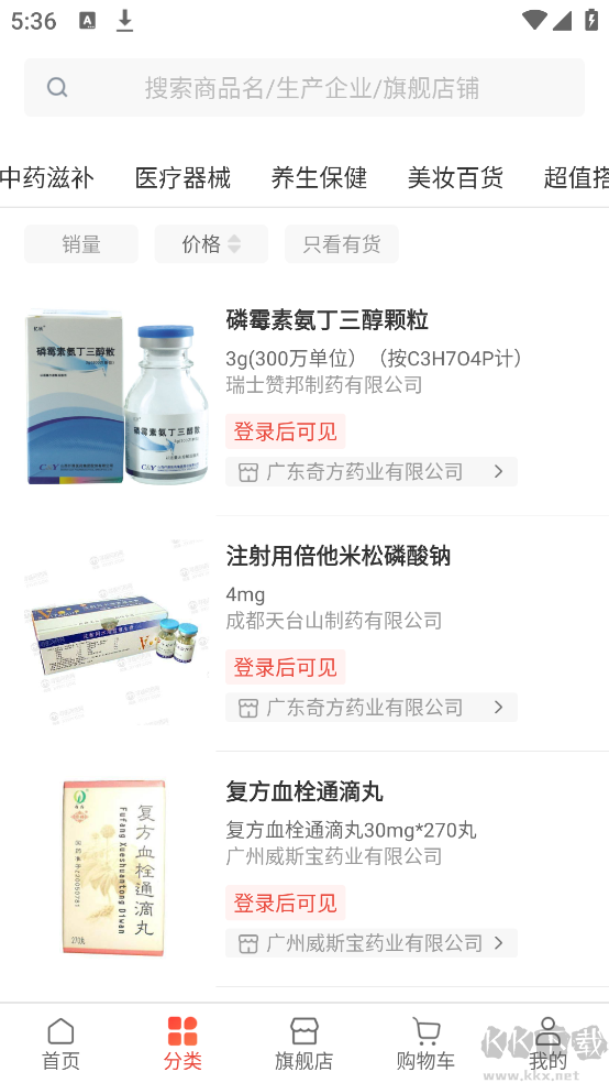 1、完成程序安裝后,點(diǎn)擊注冊并登錄,尋找需要購買的藥品。