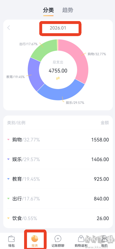 3、報(bào)表分析:依據(jù)你的記賬數(shù)據(jù)自動(dòng)生成餅狀圖與趨勢圖,直觀掌握各項(xiàng)支出去向。