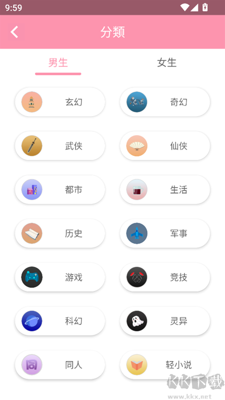 4、在分類界面下,我們可以通過不同的類型找到自己喜歡的小說。