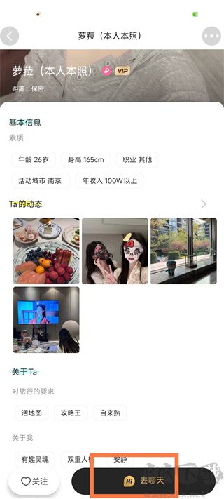 3、隨后可以點(diǎn)擊關(guān)注等待對(duì)方發(fā)現(xiàn)你找你聊天,或者膽子大一點(diǎn)直接點(diǎn)擊去聊天