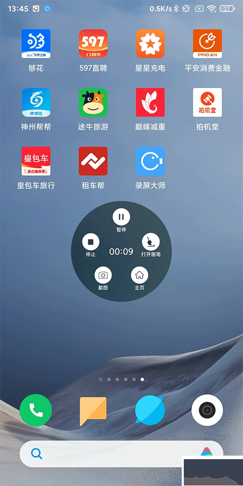 3、正在錄屏中,錄制完成后點(diǎn)擊屏幕上的懸浮窗-在彈出的小窗口中選擇停止;