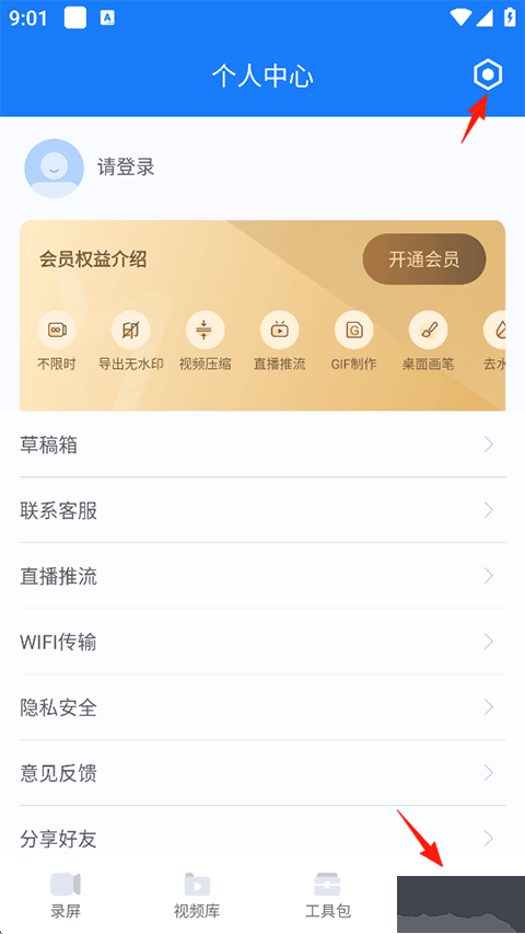 1、打開EV錄屏,點擊我的-右上角設置;