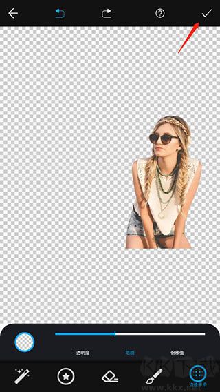 5、點(diǎn)擊之后大家可以看到已將剛才照片中的人像直接摳取出來(lái)了;
