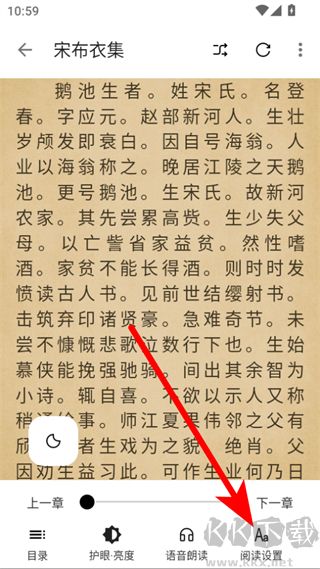 1、打開全網(wǎng)小說閱讀器APP,點(diǎn)擊想要閱讀的小說如宋布衣集進(jìn)入閱讀頁面。