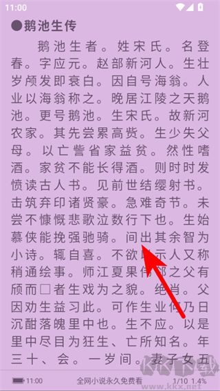 4、設(shè)置完成后,即可在設(shè)置好的閱讀界面中閱讀小說。