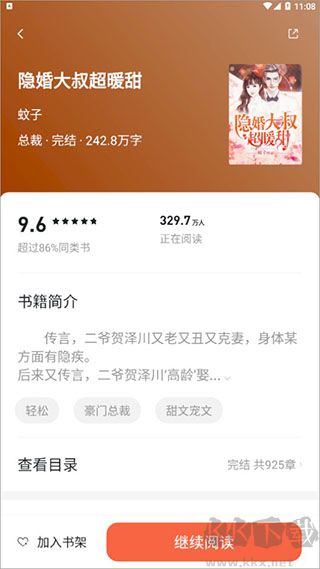 3、任意打開(kāi)一本小說(shuō),將會(huì)出現(xiàn)小說(shuō)簡(jiǎn)潔,支持加入購(gòu)物車(chē),以及分享到微信、朋友圈、QQ等;