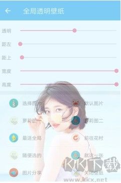 2、從手機(jī)本地相冊選擇好要設(shè)置的透明壁紙后,大家還可以通過進(jìn)度條設(shè)置透明度,方向、寬度、高度等狀態(tài)。