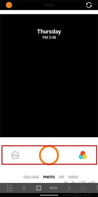 3、而工具欄上方是相機(jī)拍攝類型從左到右分別是拼貼連拍、相機(jī)、gif、錄像