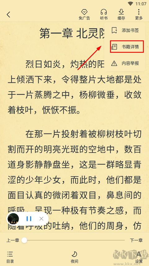 2、打開(kāi)小說(shuō)后,點(diǎn)擊屏幕中間,然后點(diǎn)擊右上角聽(tīng)書(shū);