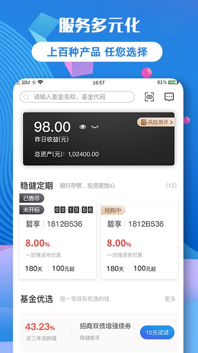 1、擁有上百種家庭理財產(chǎn)品,任你選擇