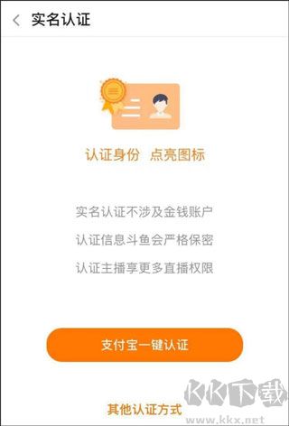 5、第一、二步我們登陸就已經(jīng)完成了,接下來(lái)就要完成認(rèn)證部分,斗魚(yú)認(rèn)證有兩種選擇,一種是“支付寶認(rèn)證”,另一種是”身份證認(rèn)證“,點(diǎn)擊其它認(rèn)證。二選一,隨便選,看你那個(gè)順手就選那個(gè)。