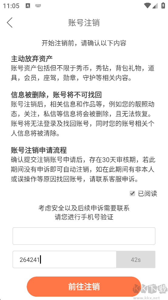 5、填寫手機號后,輸入獲取的驗證碼,最后點擊【前往注銷】即可