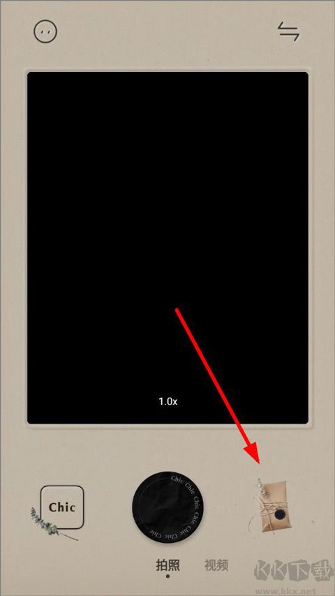 1、打開chiccam相機(jī),進(jìn)入主頁(yè),可以拍照片或者拍視頻,右側(cè)是拍照主題;