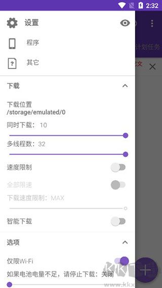 5、回到首界面,點(diǎn)擊左上角的"三"按鈕打開側(cè)邊欄,可設(shè)置最大下載數(shù);