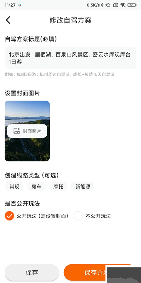 6、最后編輯修改您的自駕方案,選擇保存/發(fā)布該自駕線路。
