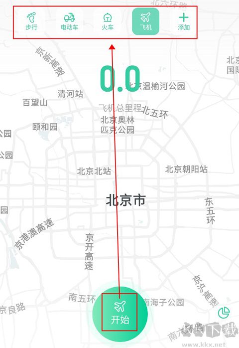 3、隨后在頁面頂部選定本次要記錄的足跡種類,點擊開始便可啟動記錄。