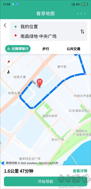 3、點(diǎn)進(jìn)無(wú)障礙模式,眼前就會(huì)出現(xiàn)可走的路線。