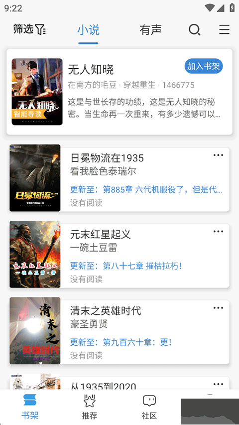 3、感興趣的小說書籍可以加入到書架方便隨時查看;