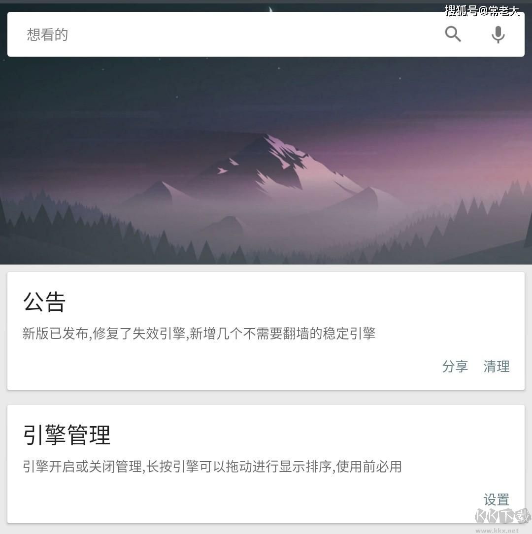 2、界面簡潔,沒有廣告,界面上幾乎只有一個搜索框和引擎管理設(shè)置,除此之外,沒有任何亂七八糟的功能!一向追求簡潔的我,讓我愛不釋手。
